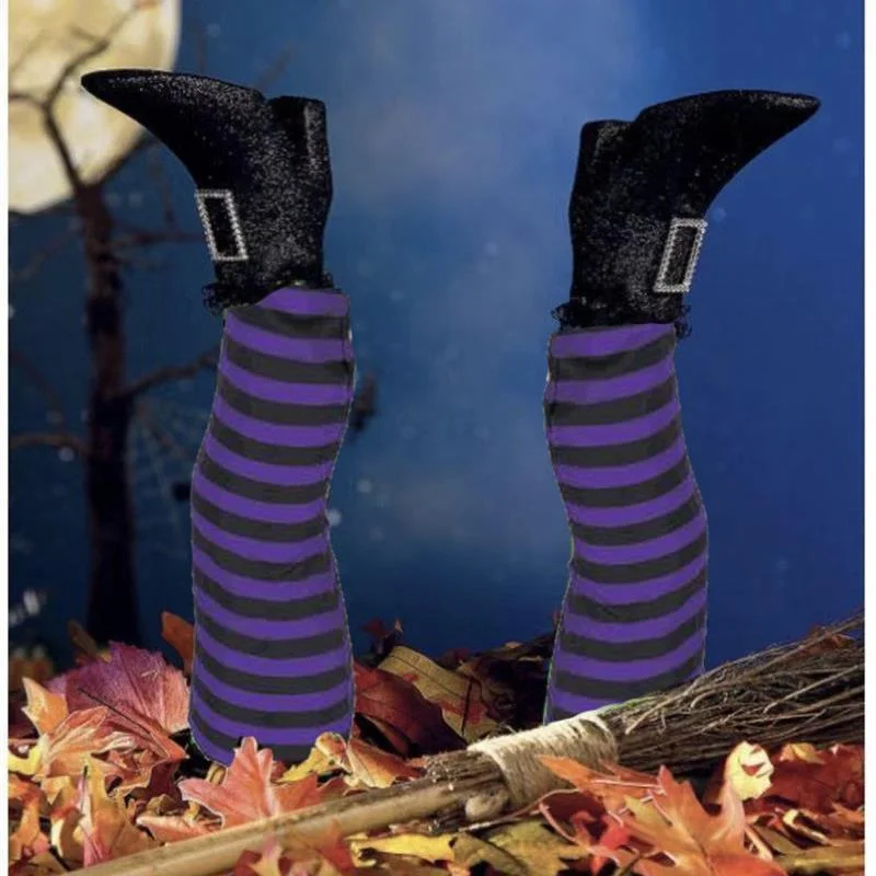 • Easy to assemble – The Halloween witch legs are used with stakes, you need to insert the black stakes into the witch legs, and then place them in the ground, it's sturdy and adorable for your Halloween yard decor.