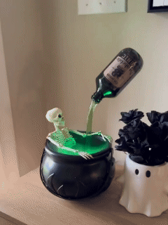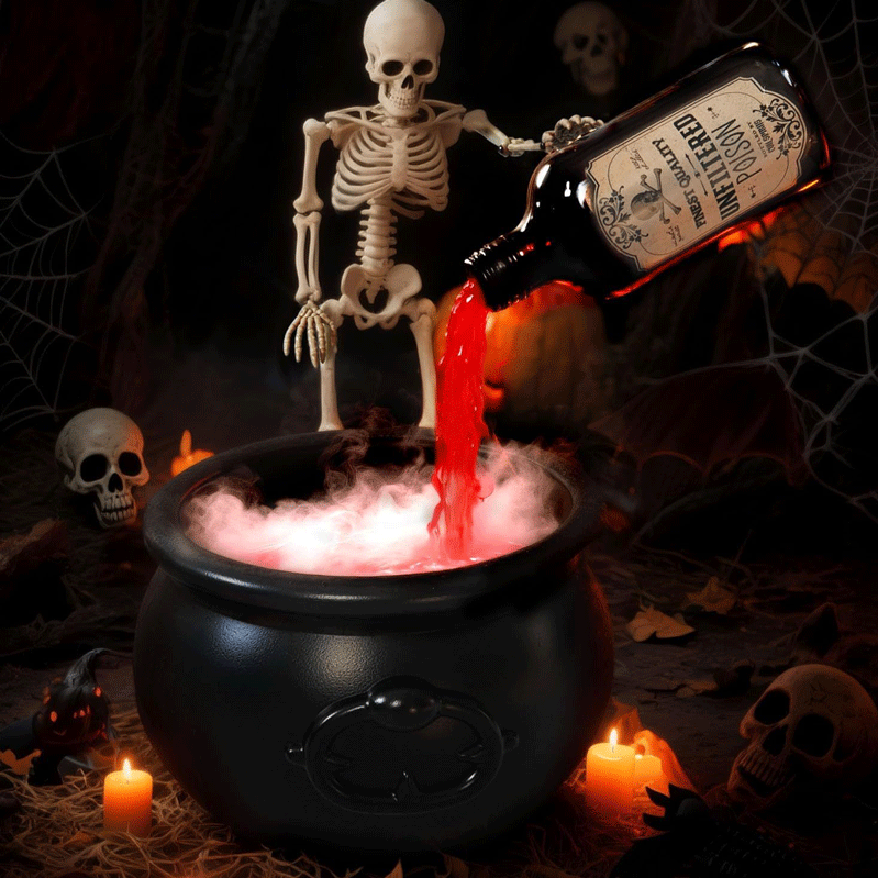 Watch the “floating” potion bottle drip into the bubbling cauldron… Fog swirls, green light glows — it feels like a witch’s brew or a cursed bath for skeletons. Perfect for a night full of mystery and spooky fun!