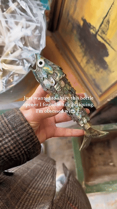 Crafted from radiant abalone shell and designed in the form of an articulated fish, this 8-inch vintage bottle opener isn’t just a tool — it’s a conversation starter.